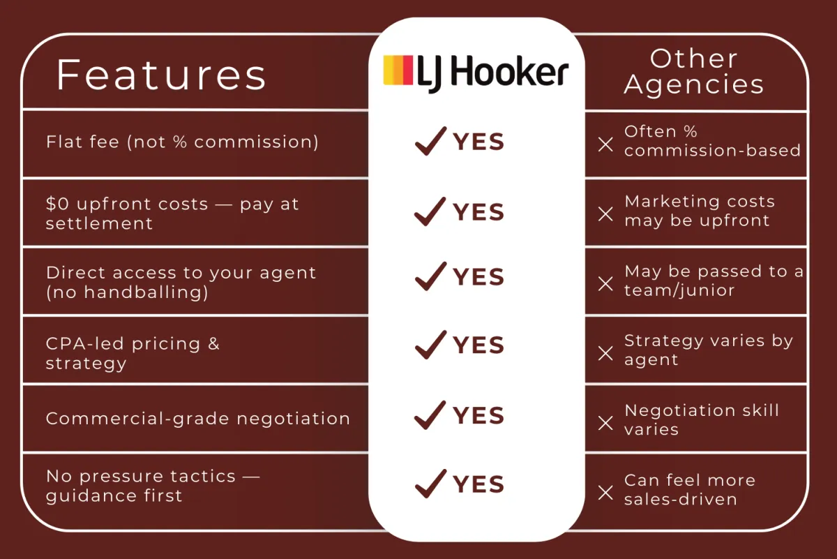 No pressure. No handballing. No percentage-based commission — just a clear strategy and a flat fee when sold.